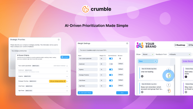 Crumble is an AI-powered platform that helps you collect, analyze, and prioritize customer feedback to fuel smarter product decisions.