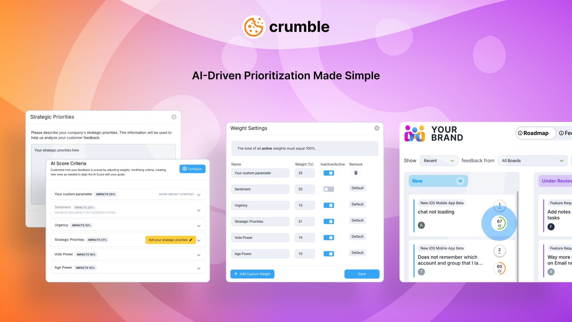 Using the power of AI, Crumble lets you collect, analyze, and prioritize feedback to fuel smarter product decisions.