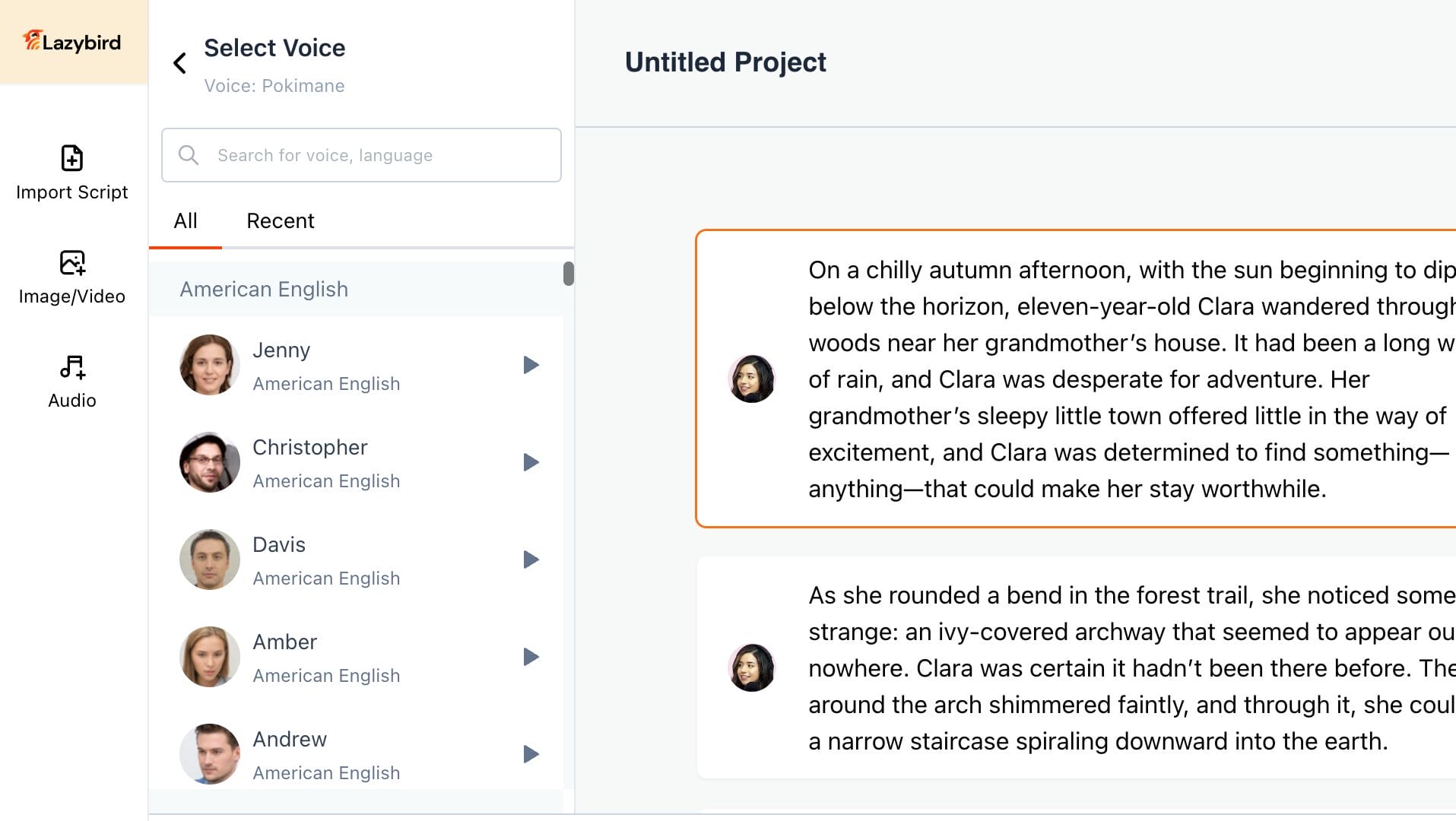 Whether you need voiceovers for storytelling or customer-service scenarios, Lazybird makes it easy to connect with your audience.