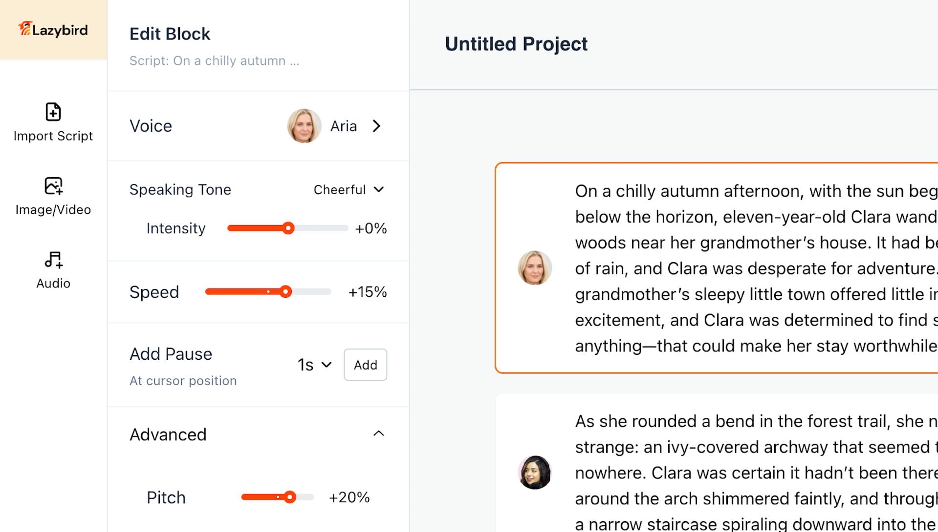 Customize your AI voices to nail the exact mood and pacing you want.