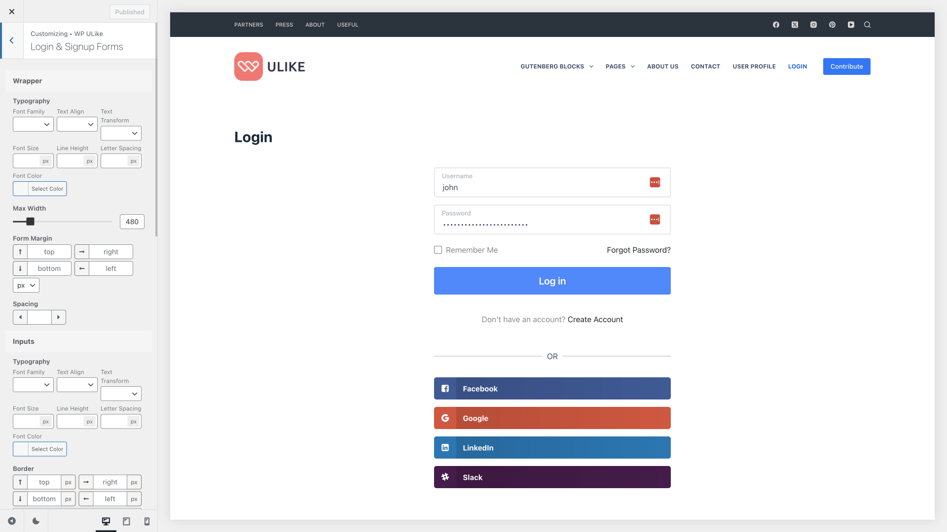 Enable social login options like Google, Facebook, and GitHub, along with AJAX login forms