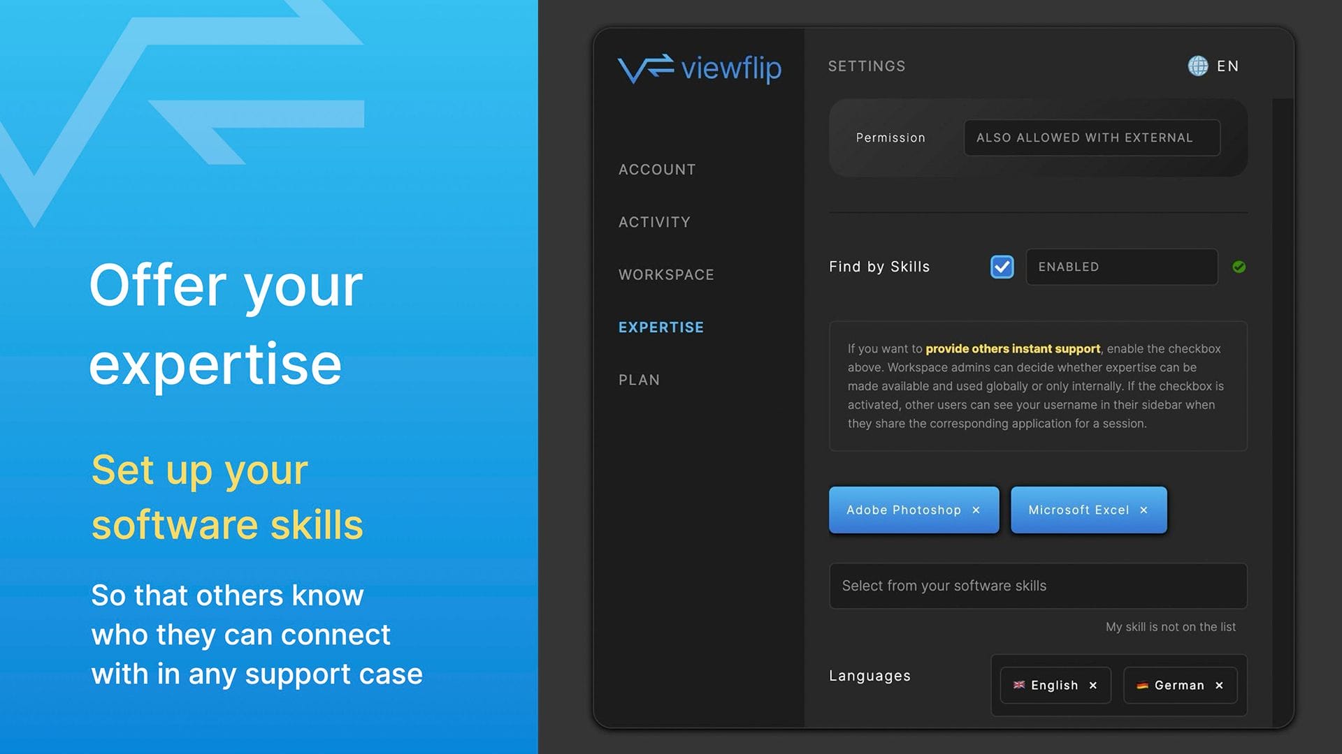 Enter your proficiency in apps like Excel, Photoshop, no-code tools, etc., and become a requested expert