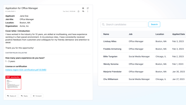 Dropboard automatically converts resumes into PDFs and sends applications to your hiring manager’s inbox. All they need to do is hit “reply” to engage!
