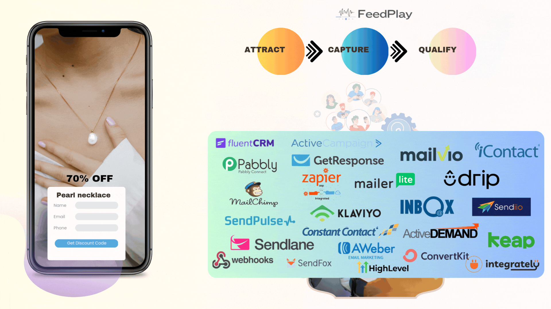 Using FeedPlay’s engagement tools, you’ll be able to generate leads, offer discounts, and track analytics.
