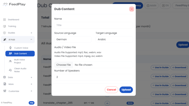 FeedPlay can also transcribe, translate, and dub content in over 30 languages, all while staying true to your brand voice.