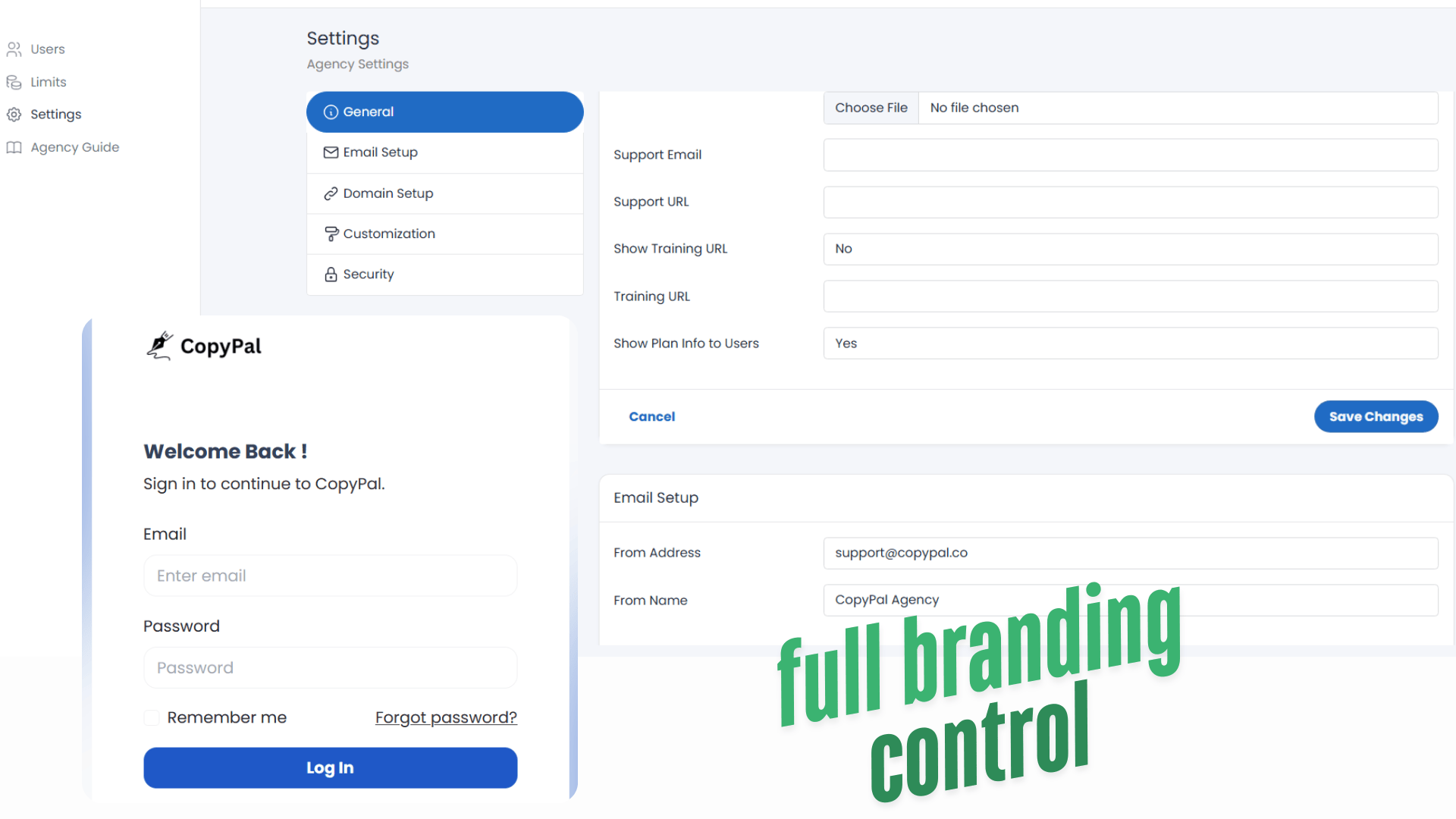 Rebrand the platform using your domain, logo, and color scheme