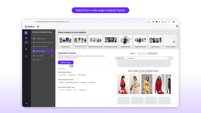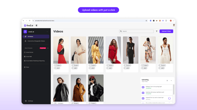 With Live2.ai’s low to no-code interface, it’s easy to create and add shoppable video content to your brand’s website.
