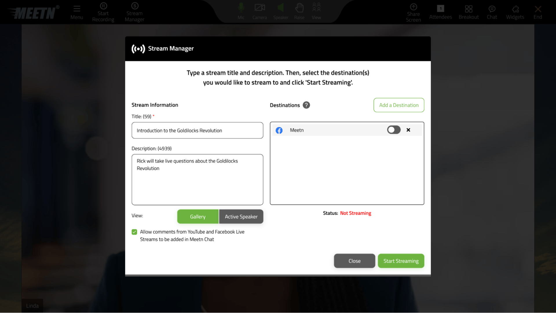 Meetn can also livestream across five platforms at once, allowing you to host live events for multiple audiences.