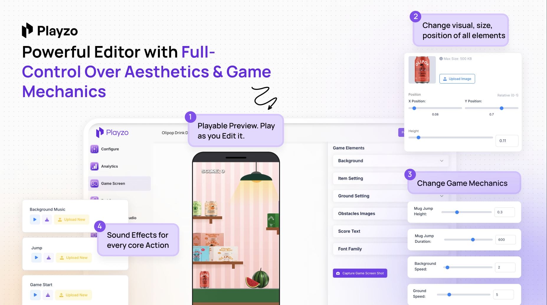 Customize everything from your content, visuals, and sound effects to the game mechanics