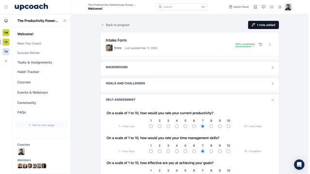 Upcoach is a platform that helps you build coaching programs and courses that keep clients accountable and foster community.