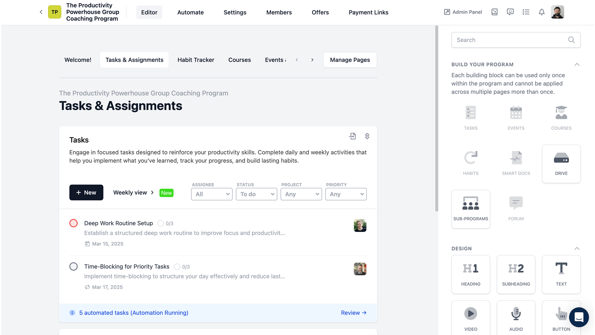 Create your own coaching program using this intuitive drag-and-drop editor.