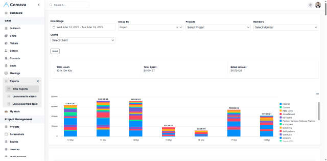 Corcava is a powerful workspace that combines project management, time tracking, invoicing, and CRM workflows.