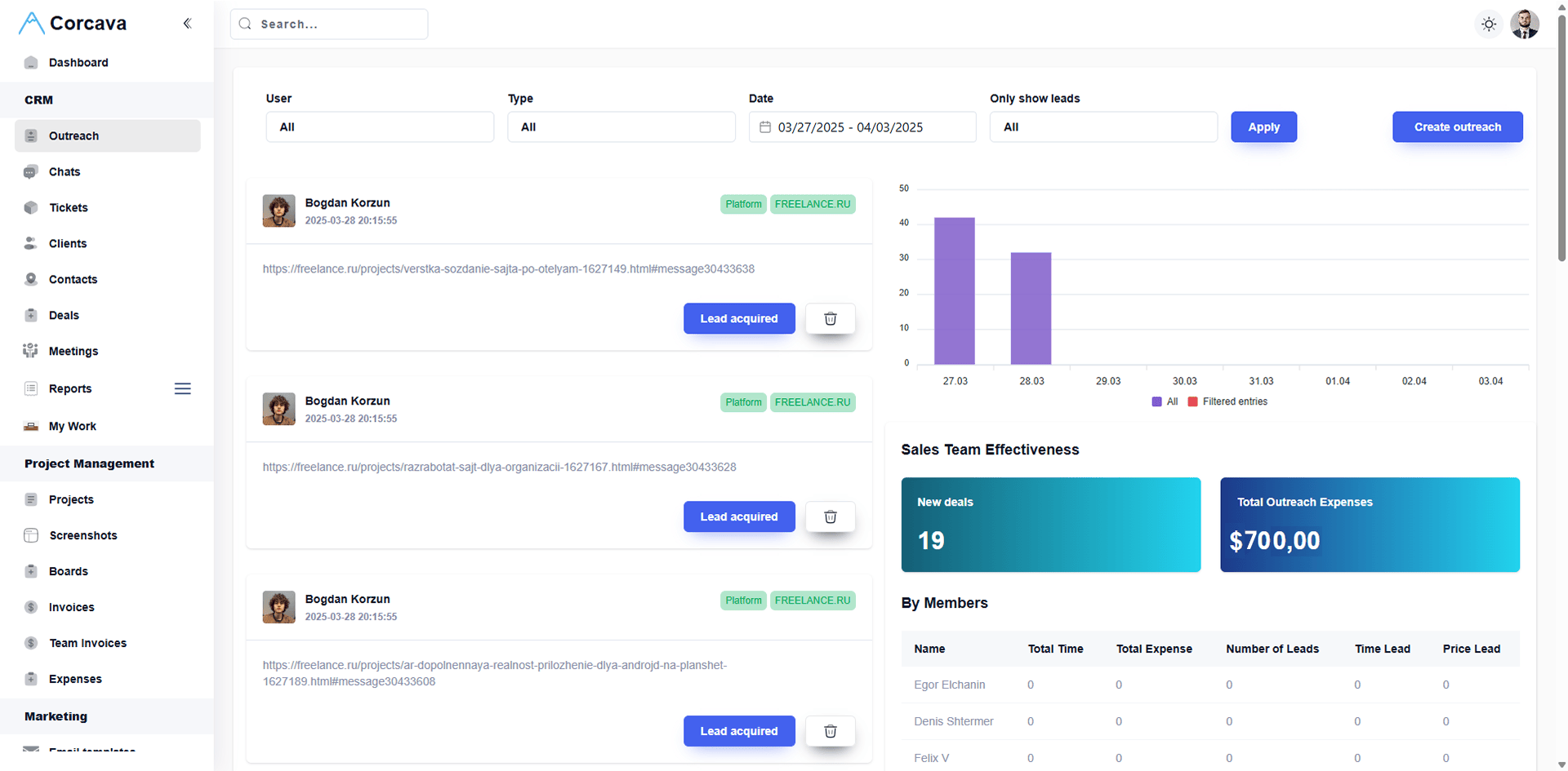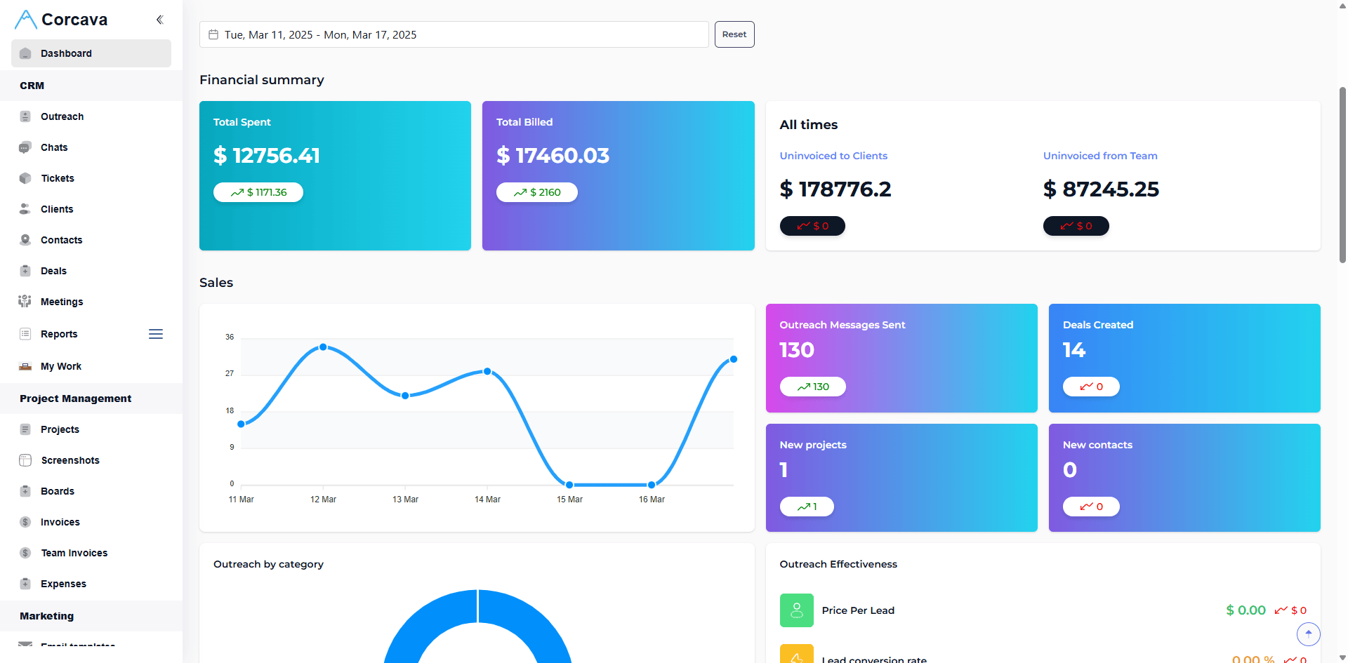 Use Corcava’s CRM to generate leads, close deals, and optimize outreach campaigns.