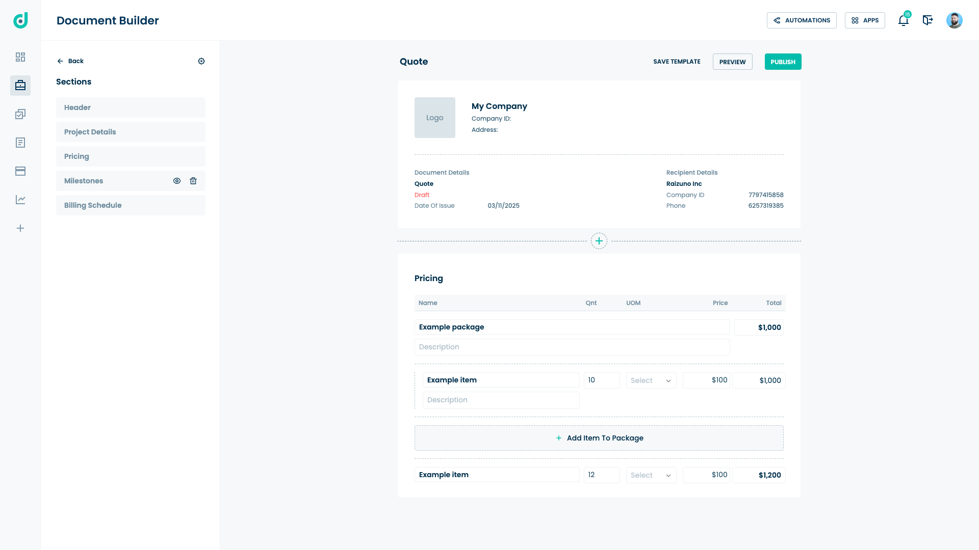 Manage clients and projects, build documents, and track operational data with flexible tools