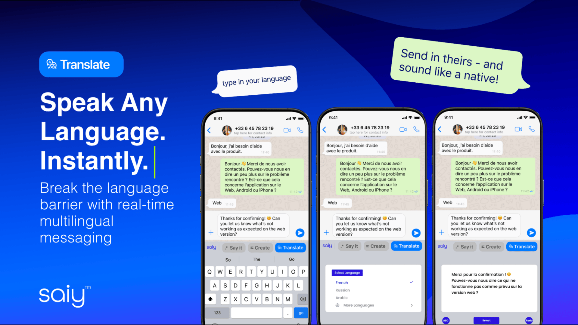 Best of all, SAiY lets you translate content into any language, so you can connect with audiences across the globe.