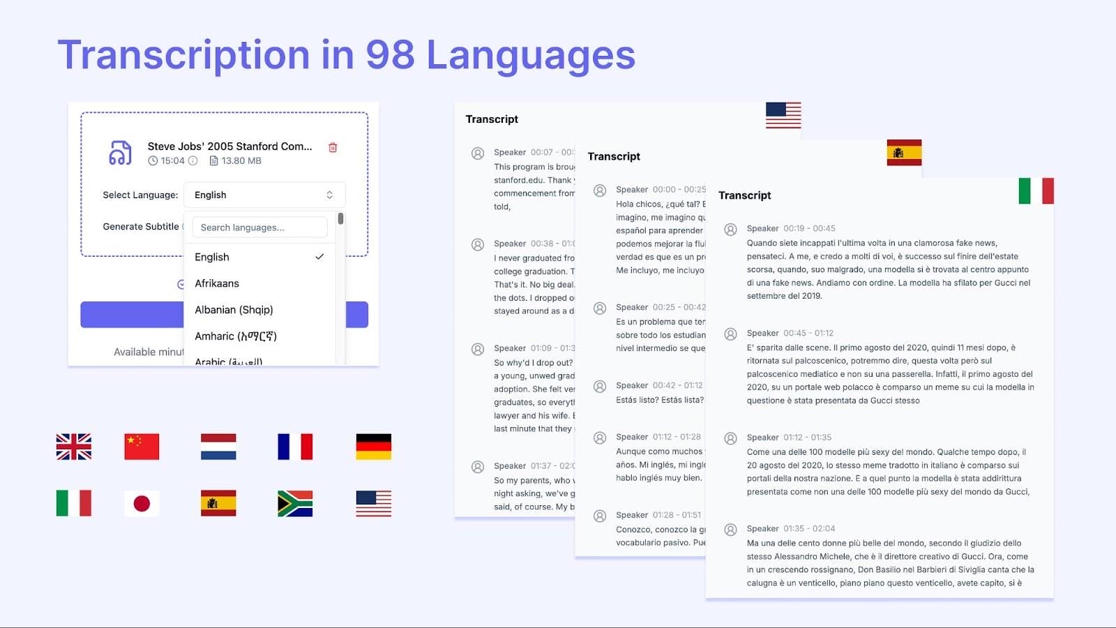 Whether you’re working with international clients or handling multilingual content, you’ll be able to transcribe content in different languages.