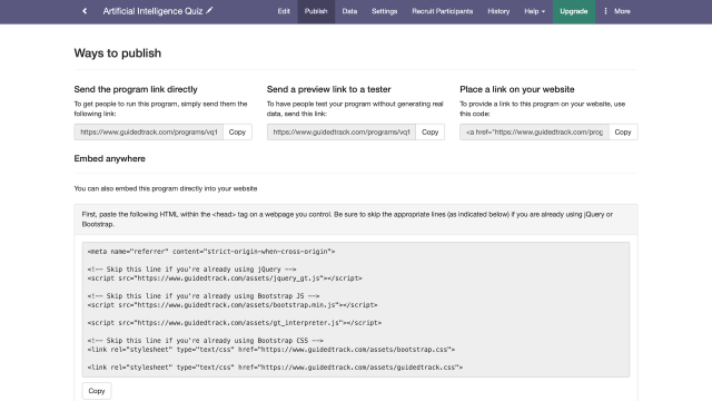 Once their program’s live, GuidedTrack will automatically collect and store all the data. You won’t need to set up databases or link forms!