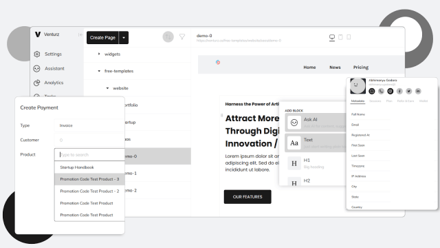 Venturz is packed with tons of tools that help you build, grow, and scale your startup—from an idea to payday.