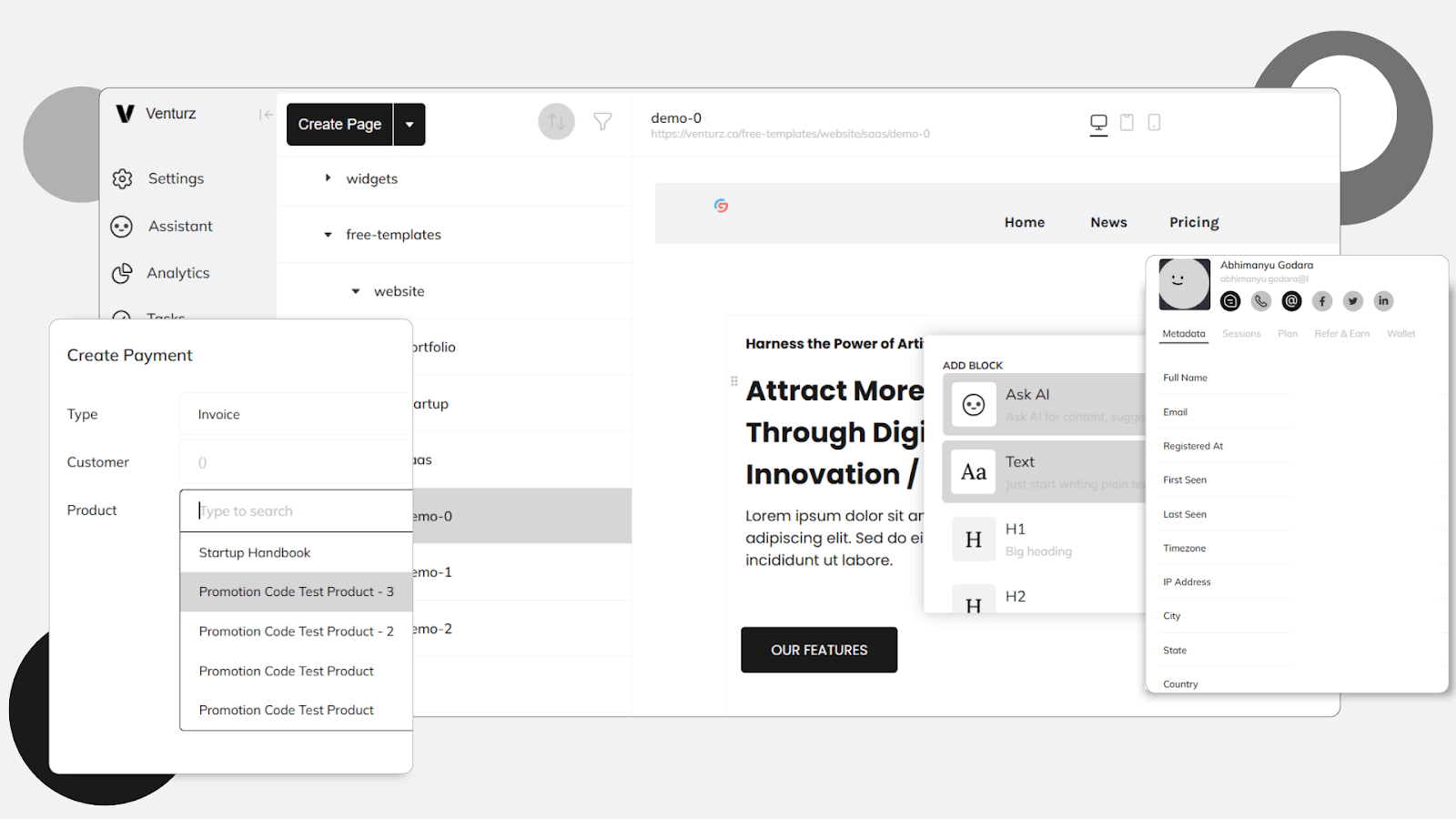 Venturz is a platform packed with AI, CRM, and email marketing tools to help you start, run, and scale your business.