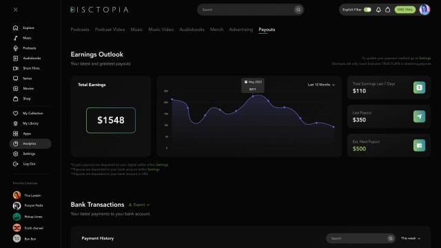 Disctopia is a streaming service for indie artists, podcasters, and content creators who want creative freedom and merchandising integration.