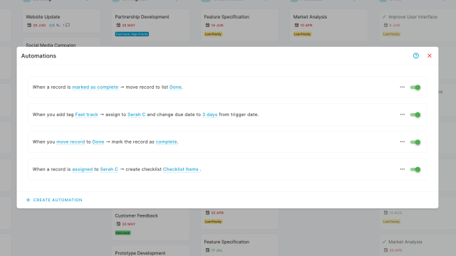 Build standard operating procedure (SOP) checklists and automate task assignments using custom field data