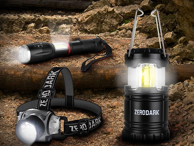 ZeroDark 3-Piece Tactical Set: Flashlight, Lantern & Headlamp for $19
