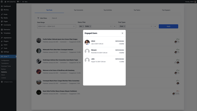 WP ULike Pro has everything you need to track user interactions, analyze trends, and optimize your site’s content strategy over time.