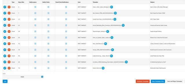 Set up time delays and enable notifications for opens, clicks, or email engagement