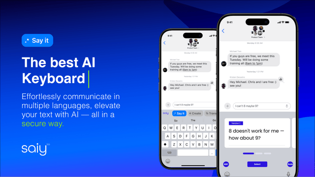 With SAiY, you’ll get an AI keyboard that can draft, edit, and translate your messages across all your apps for super smooth communication.