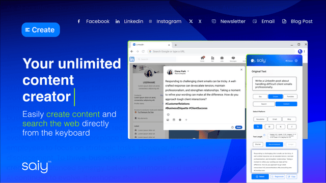SAiY is an AI keyboard that lets you write, edit, and translate engaging content into any language, across all your apps.