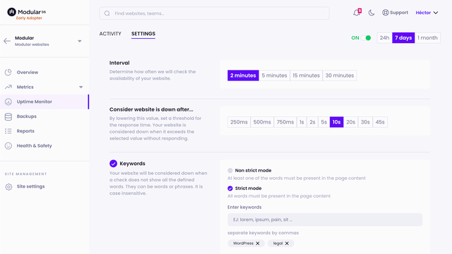 You’ll get access to an uptime monitoring tool that helps you stay online and notifies you as soon as your website’s down.