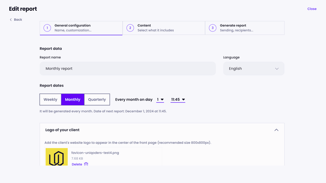 Include updates, backups, uptime, and data from Google Search Console, Google Analytics, PageSpeed, or WooCommerce