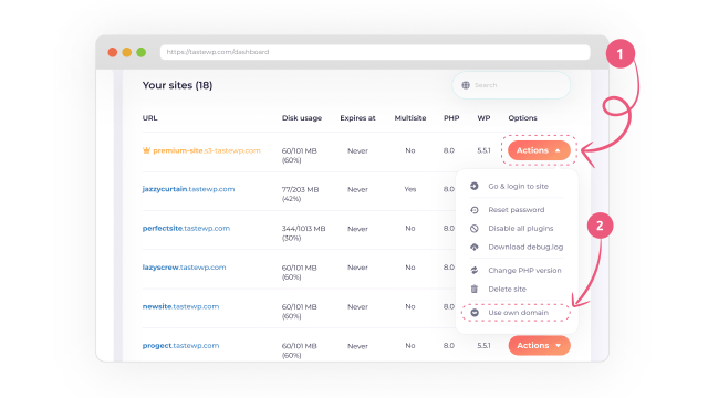 Plus, you can use your domain to make TasteWP your primary hosting provider for better performance and seamless site management.