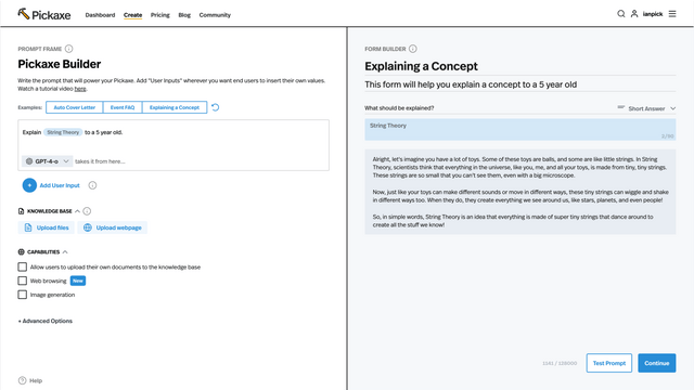 Pickaxe is a no-code platform that helps you build, deploy, and monetize AI tools to leverage the AI creator economy.
