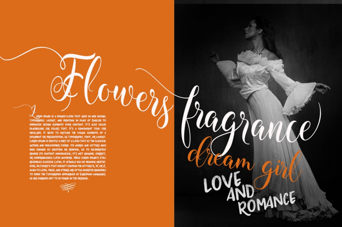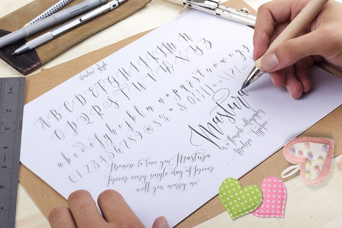 - Modern calligraphy typeface with smooth lines, pointy-edged pull pens and a blend of classic and modern elegance.
