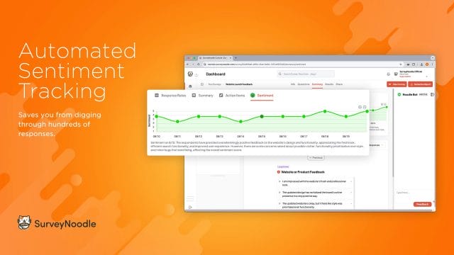 SurveyNoodle is a survey tool that uses AI to write questions, analyze responses, and help you understand the data.