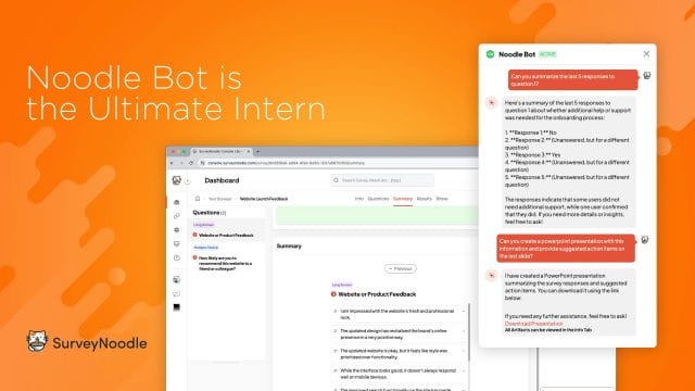 Best of all, you can literally review your survey results with SurveyNoodle’s built-in chatbot to identify insights and trends.