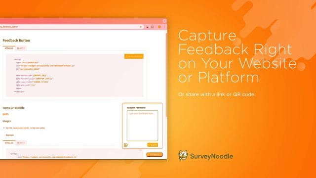 Embed a feedback widget on your website or app by pasting a snippet of JavaScript code