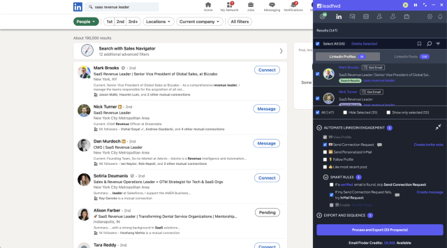 Leadfwd makes it easy to find the right prospects on LinkedIn, automate LinkedIn outreach, discover verified emails, send personalized messages, and automate engagement at scale.