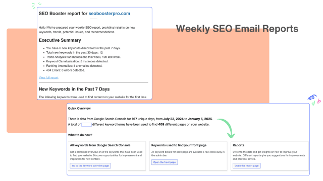 SEO Booster consolidates all your Google Search Console insights, so you can level up your SEO game without leaving WordPress.