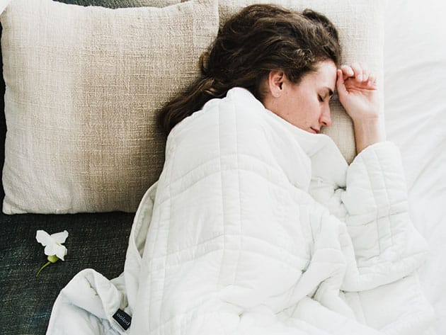 Sleep peacefully with the Baloo Weighted Blanket and Sleep Stone Mask.