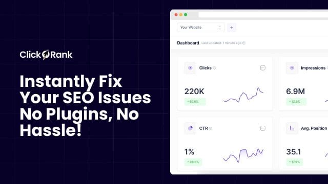 ClickRank automates SEO optimizations across your website, so you can improve search rankings without plugins or manual fixes.