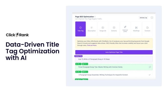SEO doesn’t have to be a never-ending puzzle of manual updates and confusing technical settings. ClickRank automates every step, from title tags and descriptions to image alt text and schema markup, ensuring your site ranks higher with minimal effort.