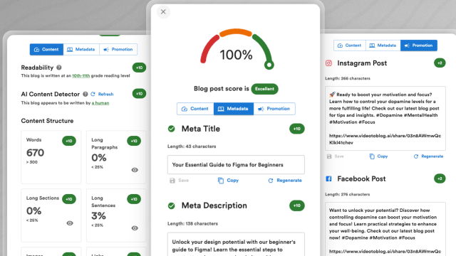 Video To Blog lets you auto-generate readable, high-quality articles with images, SEO metadata, shareable links, and more.