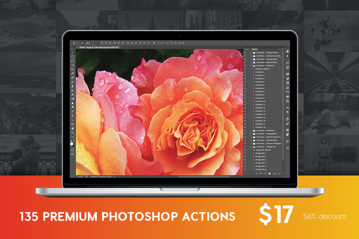Normally, this bundle sells for $39 but for a limited time only, you can get all 135 Photoshop Actions for just $17! That’s a savings of 56% off the regular price.