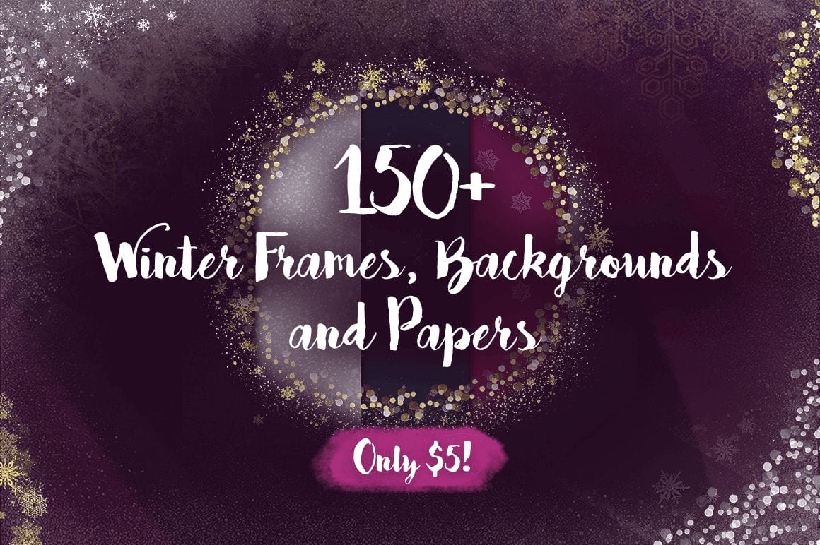 150+ Winter Frames, Backgrounds and Papers – only $5!
