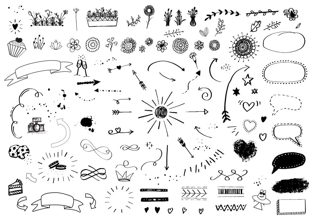 - Wide variety of elements – logos, fonts, doogles, backgrounds, templates and more.
