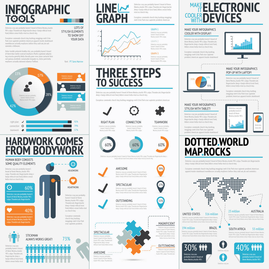 - Besides creating high-quality infographics, use any of these professional Infographic tools and kits on just about any other project of yours including: website design, emails, flyers, signs, corporate brochures, newspapers, advertisements, and more!