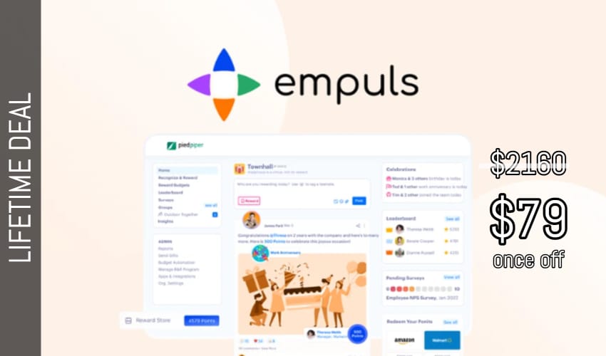 Empuls Lifetime Deal for $79 Empuls is an employee engagement platform that lets people celebrate milestones and performance, as well as earn rewards. Use the social intranet to connect teams, celebrate milestones, and publish company-wide updates Alternative to: Bonusly Get real-time feedback with surveys and set up a point-based rewards system for every department using […]