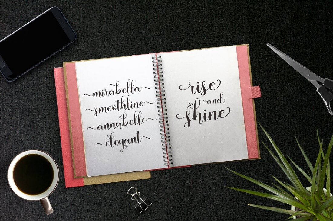 Fonts make all the difference in your designs. Sure, what you say is important, but how you say it is just as powerful! Be sure to hurry and grab this Mini-Font collection sporting 5 fantastic handmade script fonts! Whether you’re working on invitations or mugs, these professional typefaces can be molded to suit your style thanks to the many OpenType Features they include.